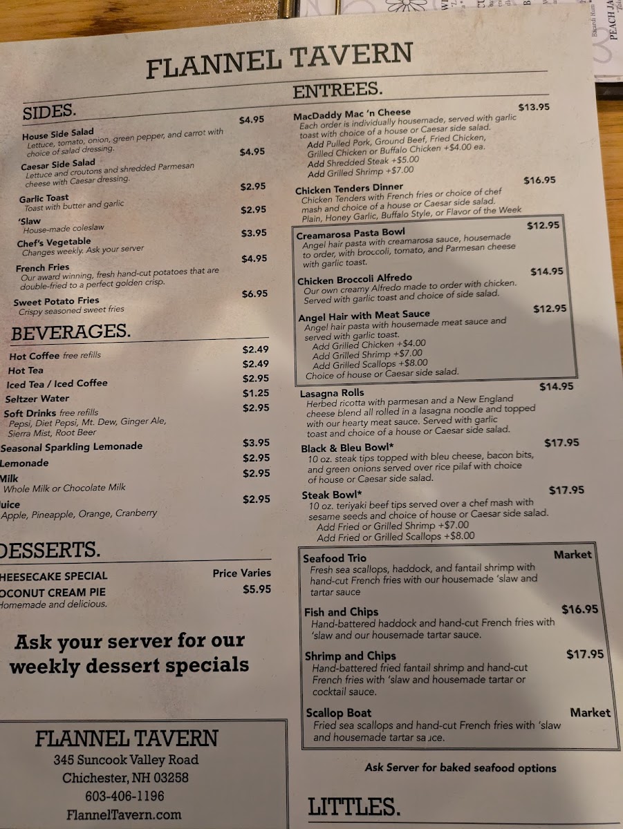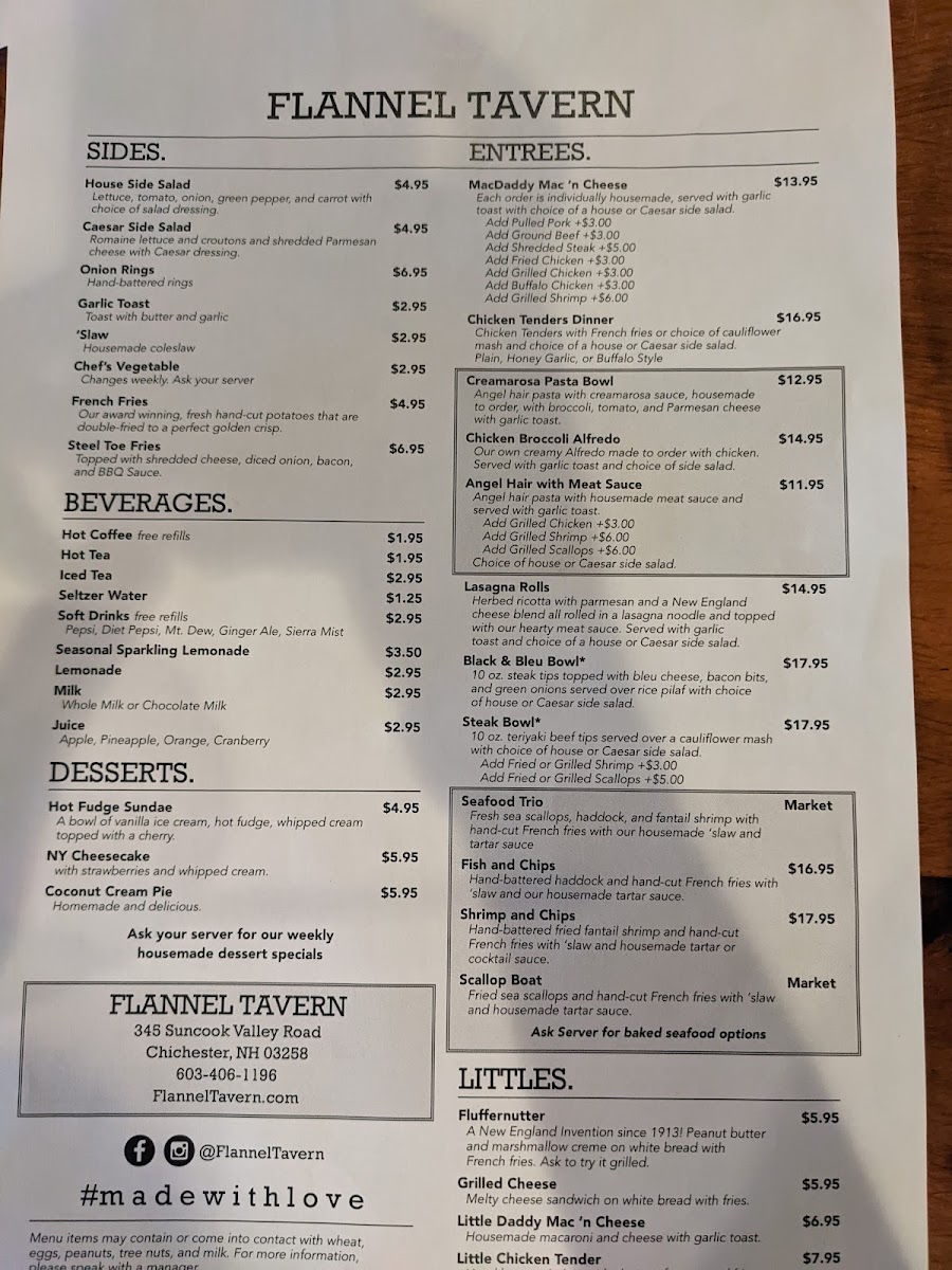 Welcome to Flannel Tavern, a hidden gem nestled at 345 Suncook Valley Rd, Chichester, NH. This cozy spot strikes the perfect balance between a rustic vibe and commendable culinary offerings.